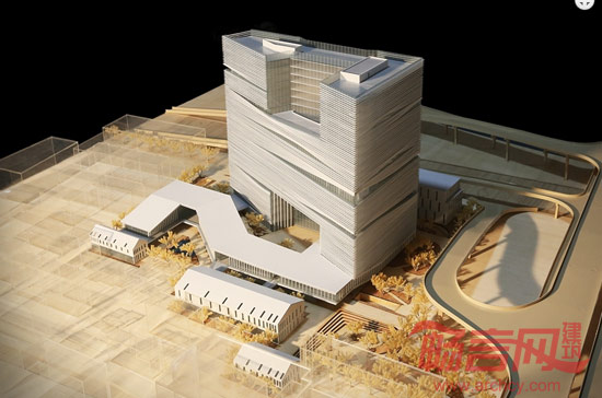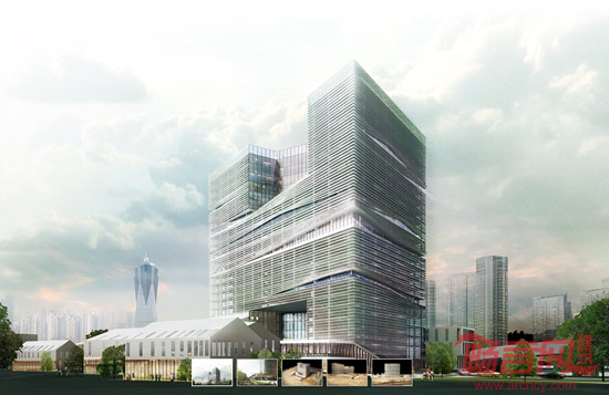 建筑主体造型与周边城市节点空间对话,在场地形成于城市节点的三个空间指向性,并退让出入口广场,对角线流线结构串联创意文化生产入口广场、中心广场与南侧下沉广场,并向两侧渗透出园林式游走路径。建筑功能立体布局,底部为开放式创意文化生产,中部为商务会议中心,上部为生产经营用房。建筑边界的处理清晰地引导公共人群的移动方式,同时建筑内外的景观又起到了节能环保的作用。