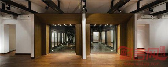 在展厅和动线的安排上,当参观者穿过前庭进入接待前厅时,首先面对的就是一副2米×2.5米、无任何分隔的落地玻璃窗,把院子的空间感和尺度感一下子带进原本略显拥挤的前厅。接下来的一系列玻璃窗,开始有尺寸和进深的变化,形成呼应不同展厅的通透“壁龕”空间。而从这些不同角度望出去,一个简单的院子和其中唯一的柳树也开始有了变化。 通过院子地面铺装材料的变换,业主原先追求的江南意境也就微妙地被解构和重新诠释了。到了最后的侧厅,空间的功能已由展示转变为茶室,玻璃窗也变成可全部开启的折叠玻璃门,人们的活动可依天气情况自由游走于室内和院子之间。