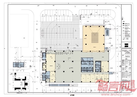 裙房二层为中型会议室,可容纳200人左右,结合会议室的平面特点,在会议室西侧设置中轴旋转隔断墙,自然形成休息侧厅空间。