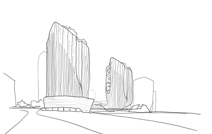 四座塔楼被设计成一个富有生命力的活体景观,犹如植被般向上生长。同时,建筑外立面的设计就像植物那样,着重强调同样的设计理念,并将建筑包裹起来,通过材料的金属质感传达出未来主义的既视感。通过参数化设计方法,外立面上的装饰翼以不同的深度排列,以反映内部的功能变化,视线的需求,并起到自我遮阳的作用。