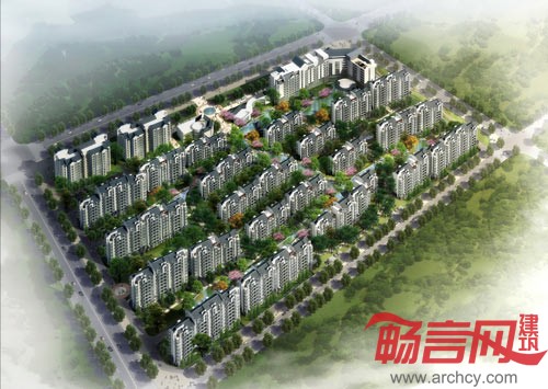 两限房在总图中位于用地的西北角,北侧与绿化带相邻,形成良好的生活环境。
