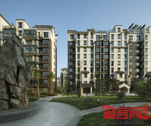 组团绿化:在周边小高层花园洋房南北围合形成了组团绿化,成为各个绿化主题的院落。