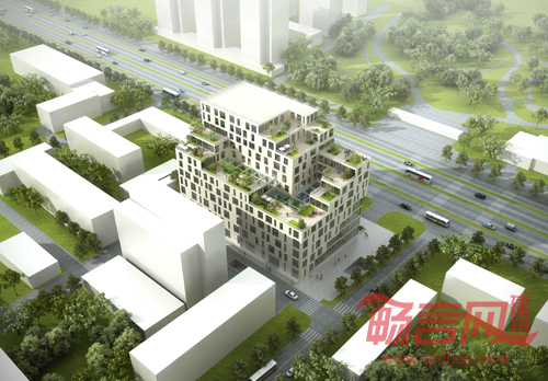 此建筑采用阶梯形状蜿蜒上升的形状,具有步步高升的积极意义。每个阶梯上设置屋顶绿化,节能环保。
