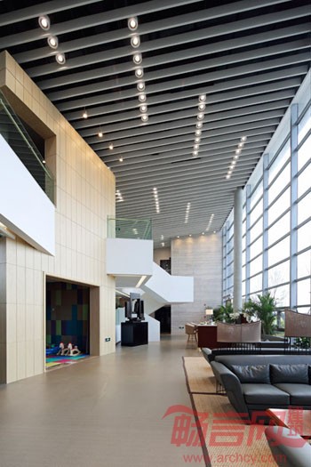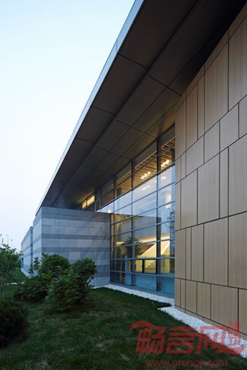根据售楼处不同功能空间的自身特点,配置予最适当的空间体量和材料质感,形成若干“梦想盒子”;并用透明的玻璃盒子将它们按流线串联,使得城市公园的绿色景观得以最大化地渗入建筑内部,使建筑融入自然。
