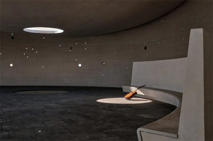 OPEN为时光塔设计了特别的定制壁灯,灵感来自时光塔的造型。现象空间墙面上精心设计的嵌入导光棒的圆洞,在空间暗下来的时候,它们会显现出星座的图案。现象空间的地面嵌入极小的磨砂玻璃面的圆形地灯,亮起来的时候如星辰点点。