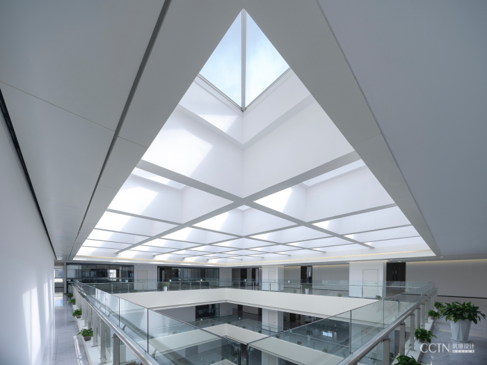 四层及以上塔楼均以行政办公、各研究所办公、小会议、活动交流室、茶水间等功能,围绕通透的中庭布置,采光充足并富有围合感。