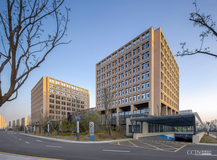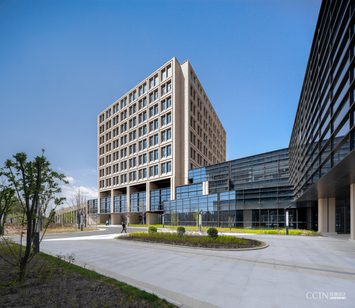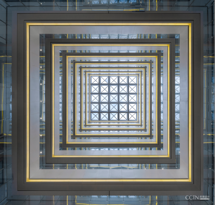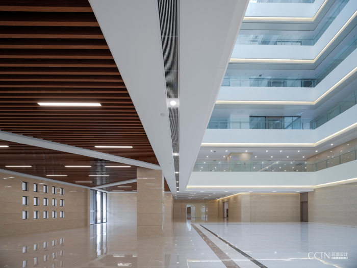 建筑室内与室外浑然一体,简洁稳重的体量既是外部形象的呈现,同时也延续到建筑内部空间。室内功能与建筑形制完美融合,“创新思维、国际化现代办公环境”满足未来更快发展蓝图。前厅、廊道、中庭等体量之间的空间曲折多维穿插,营造出丰富的空间效果,形成良好的科研办公、会议等环境,同时在每个塔楼及各出入口处均设置有休息空间、等候区供人停留。