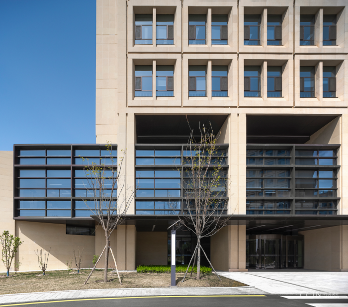 太重研发中心位于太原、晋中两市接合处,山西科技创新城核心区I区。基地周边空间十分开阔,太重研发中心厚重、简洁,同时注重细节的设计回应了周边的环境及山西本土的地域文化。