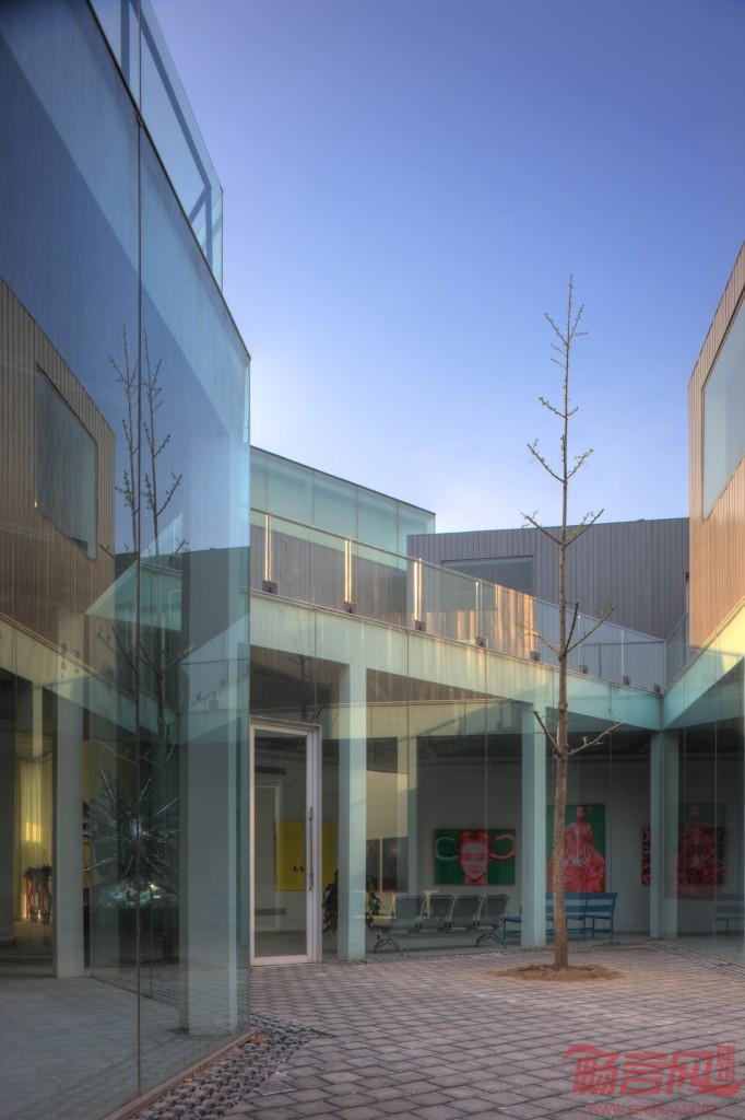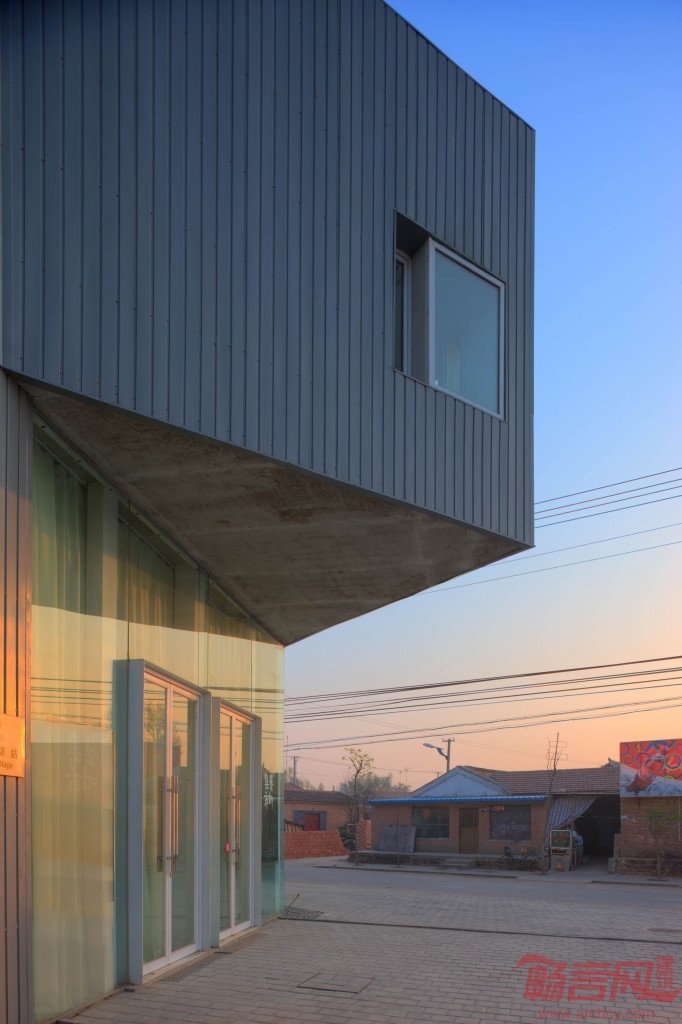地面一层由于周围民居密度所限,景观侧重于展览的艺术情景;二层的屋面平台高度正好处于民居院落的屋脊之上,放眼望去,中国北方农村典型的红瓦面绿树梢成为艺术家工作生活最为入景的风光。在这个环境里,Roof-scape取代Landscape成为风景。