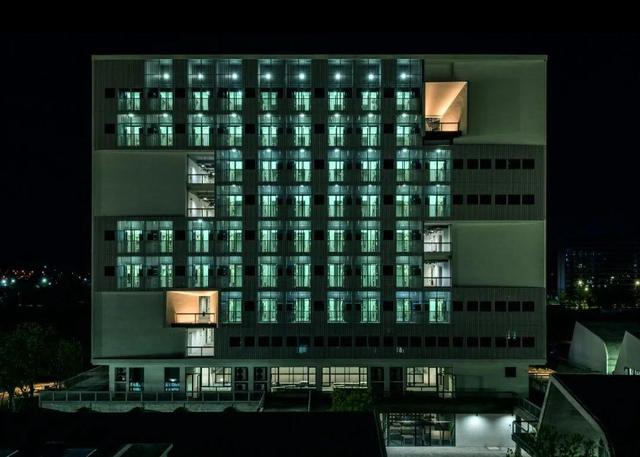 在校区空间布局上,则大多采用“差序院群”,即通过绵延工坊的单位错落形成“大中小微”的院落层次,例如宿舍楼底层被设计为对应“学社制”的学社空间,用以共同兴趣为核心的学生自组织课余使用。由于位于工坊与宿舍之间,学社既是水平工坊在宿舍的“教学绵延”,又是垂直宿舍在底层的“生活沉淀”,从宿舍途径学社进入工坊,“下楼”即可“上课”,传统校园成为了“居学一体”的垂直分层关系,从而进一步强化了一种有别于正式教学、面向自主学习和终身学习的“软教学”氛围,因此“绵延多义的工坊空间、居学一体”的学院生活得以实现。