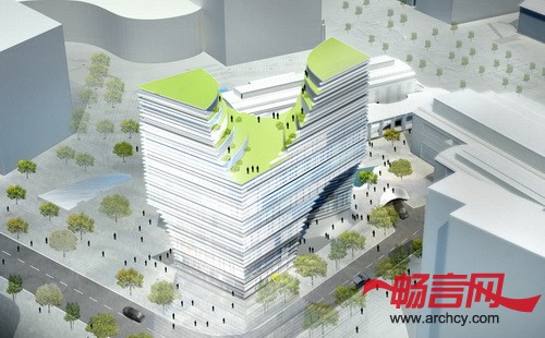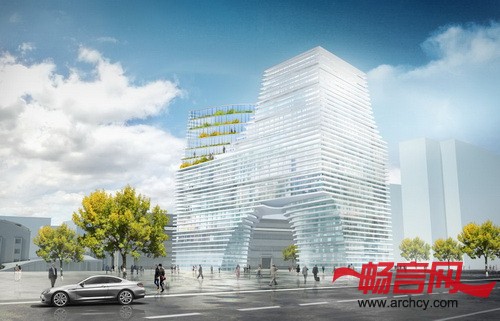 这座塔楼的设计理念就是要建造一个既不将城市封闭、又不将城市分开的门户。这座15层的塔楼设有办公室、餐厅、邮局、露台屋顶花园和一个通往购物中心的下行通道。