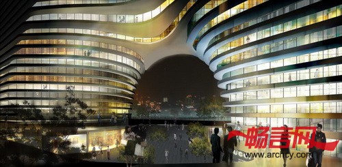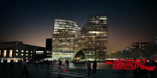 从屋顶花园上能看到远处的自然风景,石质的百叶窗是办公区域里一项可持续的设计。该塔楼将成为去往拱墅区的门户,它也是旧工业区改造的一个标志性建筑。
