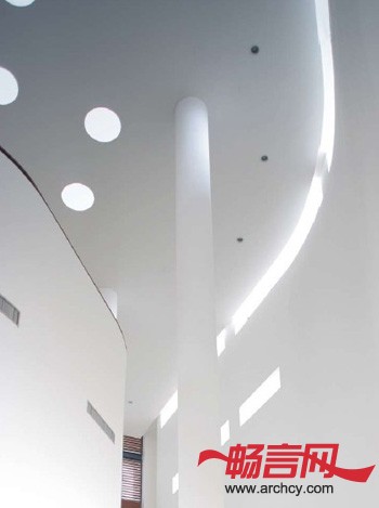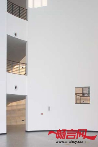 建筑内部主要使用空间(阅览室,书库,档案库等)均呈南北向布置,并用内院相间隔,采光通风良好。建筑内部流线简洁、功能布局合理,分区明确。基于模数化图书馆、档案馆的设计理念,本方案采取了9米×9米,7.5米×7.5米的统一柱网,4.8米的统一层高,使得各层空间均可灵活使用。档案馆内部空间打破了过去封闭式布局,创造了一种面向公众的开放式档案馆新模式,目前该馆已被浙江省档案局列为浙江省档案馆示范样板工程,至今已接待全国各省市一百多批档案工作者前来参观学习。