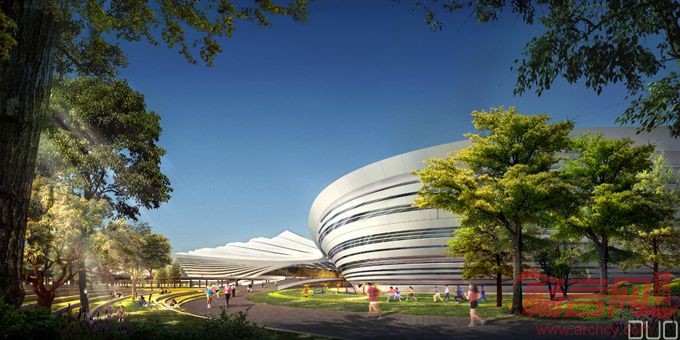 因此传统的较为单一的体育建筑风格显得不合适。多数的体育建筑都予人庞大又粗犷的感受,在此我们期待一种文化建筑与体育建筑之间的互融状态,将文化建筑的亲民性带入体育建筑中,以一种更开放更迎人的姿态展现出来。