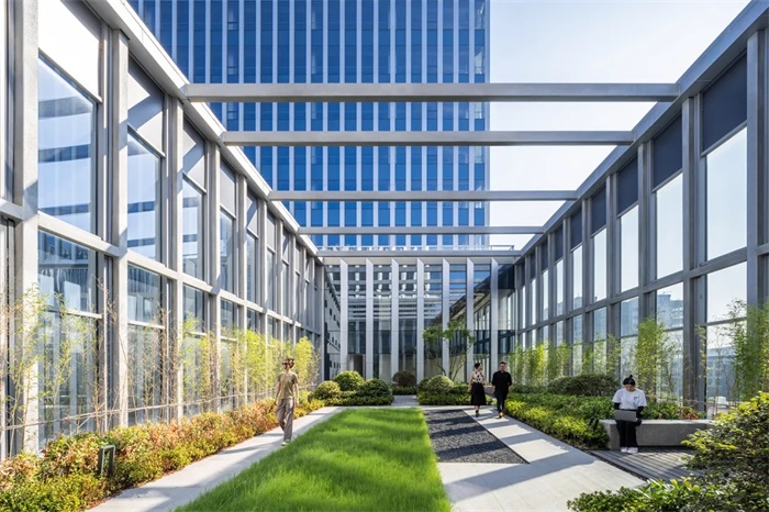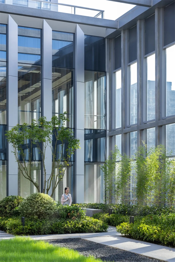设计如水连接空间,绿意涤荡身心。在非正式交流中,人才的创新灵感生根发芽。