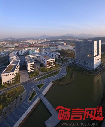 新校区共有28栋单体建筑,无一不体现着生态节能环保的理念。学院图书馆、科技楼、教研区等建筑大量采用了遮阳措施,减少太阳辐射,节约空调能耗。宿舍平面布局采用外廊式设计,以获得良好的通风。