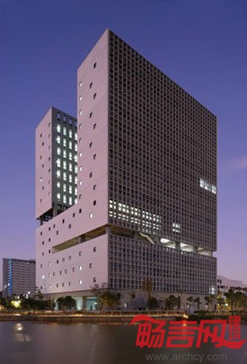 根据校园建筑上下课瞬间人流大的特点,设计上采用二层步行系统从空中分解人流压力。同时,校园内设置了大量的架空层,有效遮挡了南方炎热的阳光,为师生提供了充足的非正式交流与活动场所。15层的办公楼在垂直方向上设计了多处空中花园。