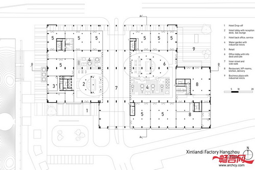 此工程是对杭州一个旧工厂进行翻修改建,将它改造成一个高质量的酒店及办公综合楼。