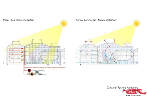 此项目的建筑场地是原杭州机械厂,它的设计目标是:建造一座楼房,让它的外观要与这里工业区的性质相互融合,而内部则进行现代美学设计。