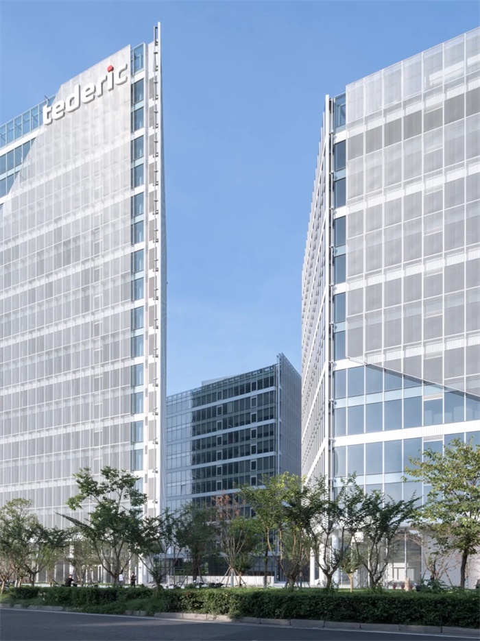 该项目为泰瑞的国际总部园区,位于中国浙江省杭州市钱塘区(杭州经济技术开发区),汇集了世界级的智能制造产业集群。园区规划总用地面积为 33334 平方米,总建筑面积达到 91208 平方米,包括 3 栋建筑楼及 1 座智能工厂,涵盖办公、酒店、商业配套等多种功能业态,可同时容纳上千人工作与生活。该项目旨在在开放式商业空间与封闭式制造业工厂之间找到新的平衡。