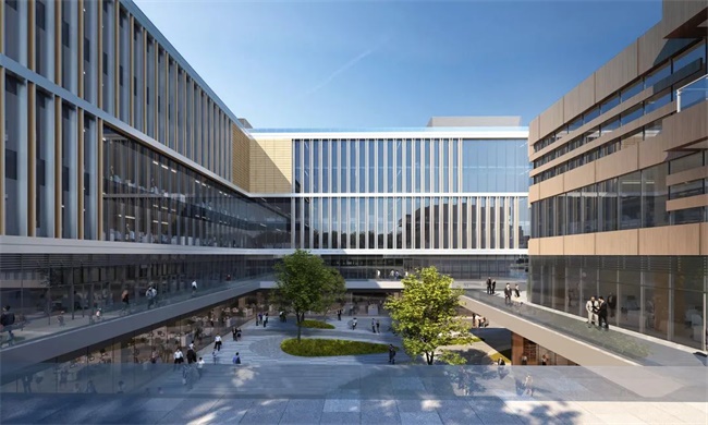 景观设计全方位整合立体空间,为科学城居民提供舒适美好的休闲场所。一体化立体空间串联建筑、开放空间与绿地系统,形成绿色交织、功能复合、舒适便捷的城市客厅。活力环所在中央区域设置集中绿地,环状的绿地规划层次分明。下沉广场有效跨越四个地块的建筑,使其形成有机串联,柔性的室外绿色空间将建筑与公园绿地柔软地包裹其中,成为亲切宜人的城市客厅。