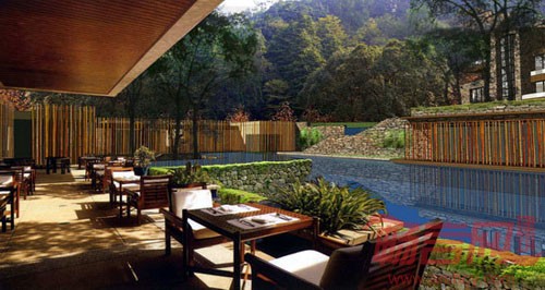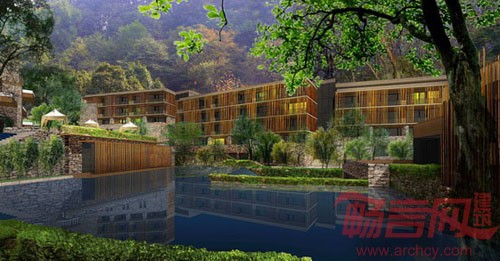 四川都江堰新华酒店项目位于都江堰北部青城山景区内,由四川新华发行集团有限公司投资兴建。项目基地位于青城山脚下一处山谷地形内,总占地面积48288平方米,总建筑面积:34550 平方米。根据项目地块坡度较大、地形复杂的特点,我们选择了集中式与点式布局相结合的规划布局方式。单体建筑立面语言选用厚重的毛石墙面与轻盈的竹制百叶等具有地域特点的构造材料,建筑形体组合灵活自由,与山地地形融合。项目目前处于竣工验收阶段。项目地块坡度较大,地形较复杂,因此我们选择了集中式与点式布局相结合的规划布局方式。这一规划原则既符合功能要求,又可以使建筑空间很好的契合地形特征,具有很好的灵活性。