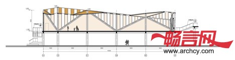 它由三角形的木板和玻璃条交替组合而成的平板建造而成,在这里,顾客可以看到周围美丽的自然风景。
