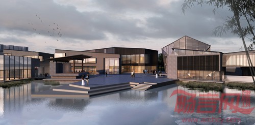 水乡的水体呈线性形态,边界多为硬质。建筑沿水单排双向布置,并有内向合院居于其中。空间节奏上宽窄有致,收放自如。