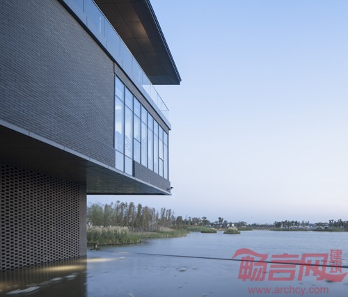 对空间层次和空间尺度的把握,建筑与水的关系的处理,无边际人工水面和自然湖面的一体融合。