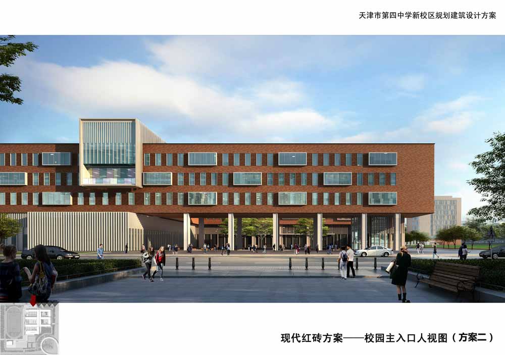 第四中学是天津市首批示范学校、市级重点中学,是代表天津市基础教育全国领先形象的学校。设计充分体现先进学校设计理念和建设经验,为四中提供既能满足未来教育、教学发展需求,又能体现其深厚文化底蕴的现代化学校。