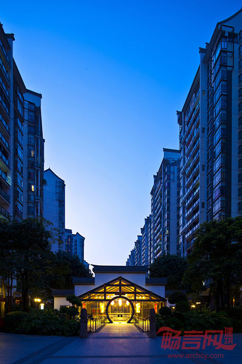建筑以传统民居——徽派建筑为主调,把最具代表性的风格元素,以现代手法与技术手段来表现“东方人居”。建筑立面重点突出了传统民居“黑、白、灰”的色彩特点,立面风格清新淡雅,淳朴自然。每栋建筑均前有庭后有院,看似独立却又相通,与中心大花园形成相对封闭而又开放的空间。整个小区的建筑延续传统的中式风格,室内装修风格融入中国琴棋书画的淡雅和古典美,让中国传统文化再次得到最好的传承。