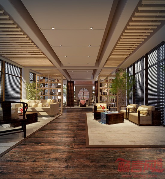 设计说明:新古典天弘基金会所中式装修案例,将大自然的娇花绿植,粗糙红木地板,粗犷原石等原生态意象融入到细腻的中式设计手法里,还将文人风情的淡雅软装、茶禅,书法绘画艺术,寄情于了粗犷的原木,原石中。设计师采用这种“粗中有细,雅中带糙”的创新设计,不仅让人体会了会所宽阔空间里的潇洒,还让人体味到会所禅味风情里的深远意境。