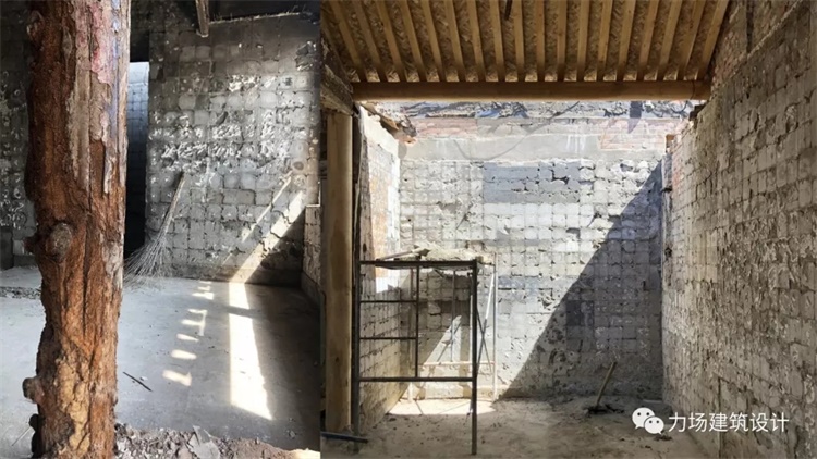 二,物质的力、时间的力:大厅旧混凝土模板浇筑的印迹清晰可见,“厨房”区建筑是传统的梁木结构,年久失修亟待被清理,被发现,以重新散发古老魅力。被潮气及蚊虫侵蚀的木头柱、混凝土模板浇筑痕迹、木屋顶、旧瓷砖水泥贴面,清绿色旧窗户、旧水磨石地砖,我们认为所有场地的这些物质之间有很强的联系,彼此之间存在着特殊的力,他们在不同的年代建造,修缮、连接、所用,经过时间的洗练现在呈现出不同的状态及颜色,改造后与新空间微妙结合,这些一切由时间做为连接而发生的变化和对话,新设计就是要强化这种连接,强化物质之间因新旧对比而产生的时间感,强调因空间变化而形成人对时间的感知。