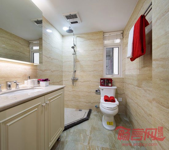 厨房是女主人施展厨艺的地方,暖黄的色彩及收纳空间,让整个厨房看起来干净利落。洗手间虽然不大,通过设计师的精心设计,镜柜吊柜等实用空间,让洗手间麻雀虽小五脏俱全。
