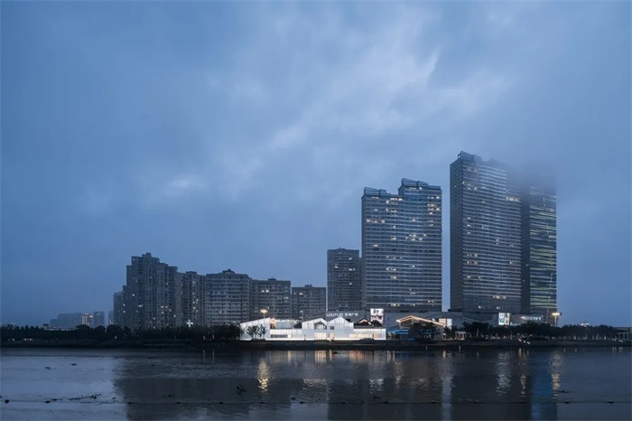 设计的开始完全可以基于一种情绪。白天站在永宁江边,江水平静地缓缓东去,我很容易被带入中国南派山水的平远式构图之中,心情和视线都沿着水平线延伸而放松。晚上,江边许多人各自扎堆娱乐,热闹欢快而不嘈杂。空气中略微有些潮湿,江风轻轻弹破水珠,在我的脸庞周围爆裂出一点一点的清爽。我很羡慕这个城市的安详和愉悦,这是上海所稀缺的。突然,我认定应该有一朵云,平静地缓缓在江边升起。