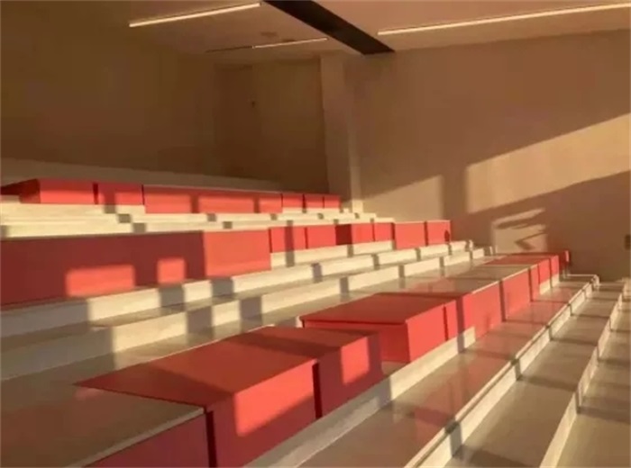 咖啡馆螺旋楼梯而上有个蓝色玻璃屋,日光下把橘色楼梯和屋顶交接处染成极其漂亮的紫色。不过只要按一个开关,蓝色玻璃就变成无色透明,永宁江就跃然眼前。这个玻璃是黄岩当地企业自主开发的车玻璃技术。我第一次拿来用在建筑上。我在演讲区也采用了这个玻璃。因为我一直幻想这个场景,在春天,我坐在阶梯上,蓝色褪去,盛放的樱花如云一般绽开在我脚下,这一切,真好。