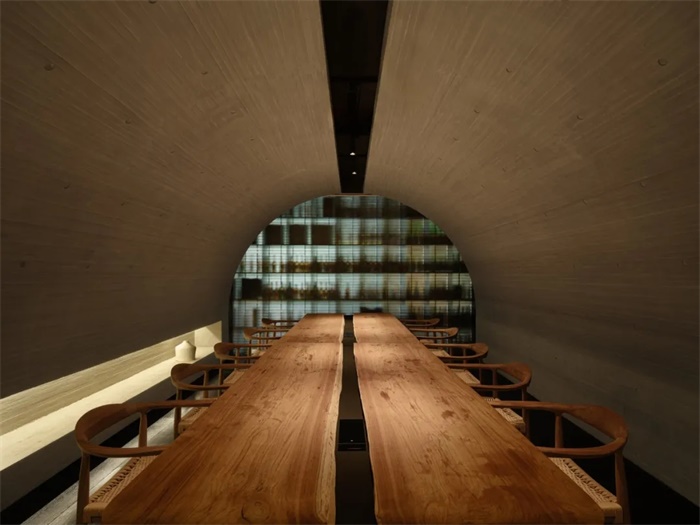 为了突出舒适紧凑的包容感,其中三个独立的空间从墙壁到天花均被混凝土的拱形结构覆盖,同时浇筑了混凝土的长椅并预埋真火壁炉。