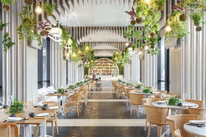 酒店拥有294 间舒适、雅致的客房,为了打造不同的宾客体验,标准客房设有3种主题,以卫生间与卧房区的不同组合关系,营造出别有趣味的客房氛围。客房楼首层还设有独具特色的泳池池畔客房,客房楼顶部设有3套空中海景复式套房,每个套房都有独立、私密的屋顶花园及泳池。酒店内设有大堂吧、全日餐厅、中餐厅、屋顶酒吧、宴会厅及多个会议室,还设有SPA中心、儿童与康体中心。室外设置了多个特色泳池及休闲空间,场地中部还预留了下穿市政道路直达海滩的地下通道。酒店客房柱网采用10 m x 5 m,层高可达到3.8 m,其标准均高于普通的五星级酒店,为营造宜人的客房空间,提供良好的居住条件。为了保证屋顶花园的整体效果,顶层客房上部设置了设备夹层,使大量的设备管道在此处进行转换,保证了外部的建成效果。在技术策略方面,设计充分结合了壹酒店的环保概念,强调建筑的自然通风与采光,多处设计底层架空花园、空中庭院、屋顶花园,同时外立面遮阳隔热、场地雨水收集与利用、中水处理、太阳能热水、外立面自动滴灌系统、多重生态景观多样性、高效节能机电设备等一系列绿色智能技术也在建筑中大量使用。同时,室内外随处可见的艺术品展现了艺术与自然万物相结合的理念,木材、绿植及其他环保材料的使用让优良的材质再一次绽放了生命力,留存在每位宾客的记忆中。