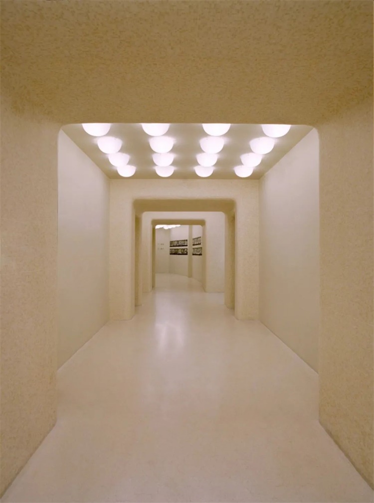 书籍陈列在大楼的一楼,服装陈列在二楼。 两层均采用开放式布局,流通路线由搁架和挂衣杆界定。由石材边角料制成的马赛克瓷砖被用来构成装饰护墙板,它们有着与外墙相同的乳白色米色,体现了 1970 年代上海的室内设计风格。