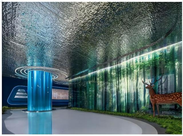 基于此,赛瑞迪普设计团队引入“能源森林”的创意主题,将智慧能源展厅打造为自然与科技有机融合的美学意境,艺术化呈现一个沉浸式体验空间:城市能源极致清洁、人类高新智慧科技与多物种多地貌的原始森林相安相生、各自繁荣。