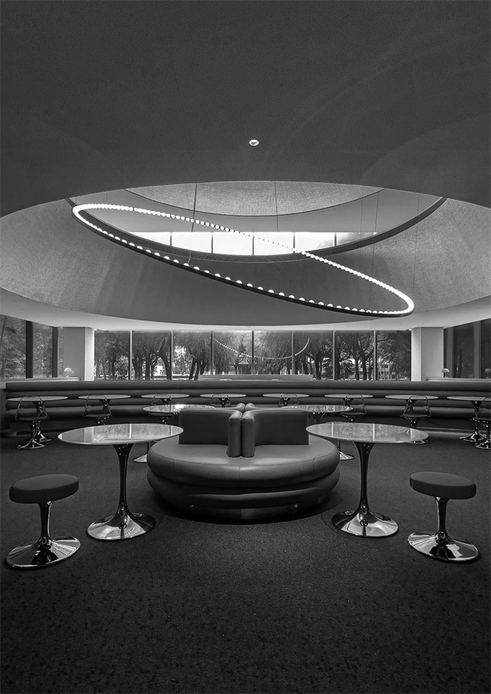 在同一概念的聚合体之下,设计与时尚亦是一种循环轮回。20世纪摩登时代的美学成就与科技“爆炸”,成为本案的灵感线索,以更大的广角重新释义未来主义,让这场空间设计实验建立在坚实的逻辑上而不是想当然的推测。