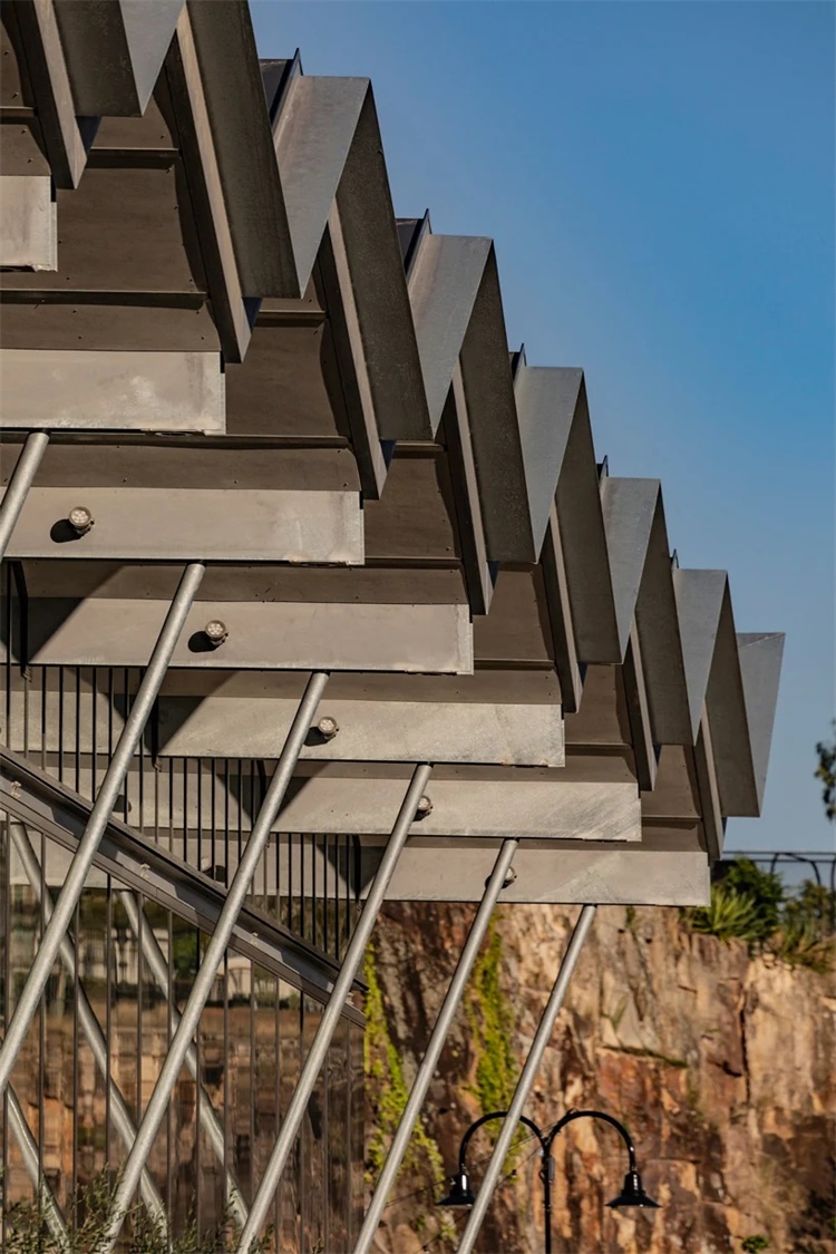 根据政府规划,Howard Smith码头历史遗迹将转变成涵盖有限商业开发的公共公园。伍兹贝格的总体规划满足了新建筑最多只占10%的规定。项目将大部分土地用于绿色公共空间,并重新利用现有建筑,采用质朴的色调,使新旧建筑和谐共存。项目引入展览空间、酒店、餐厅和酒吧,激活滨河公共空间。