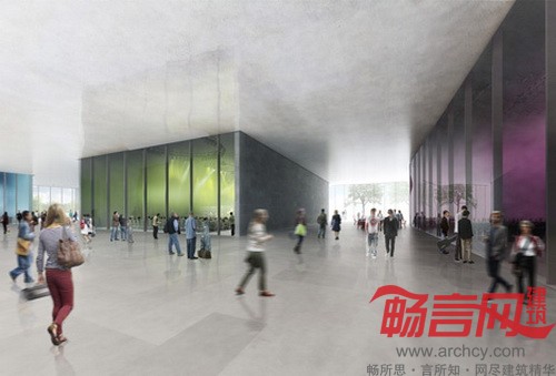 阿德迦耶建筑事务所计划在文化园区内建设一座公共大厅,这个大厅与9个文化机构都互相连接。