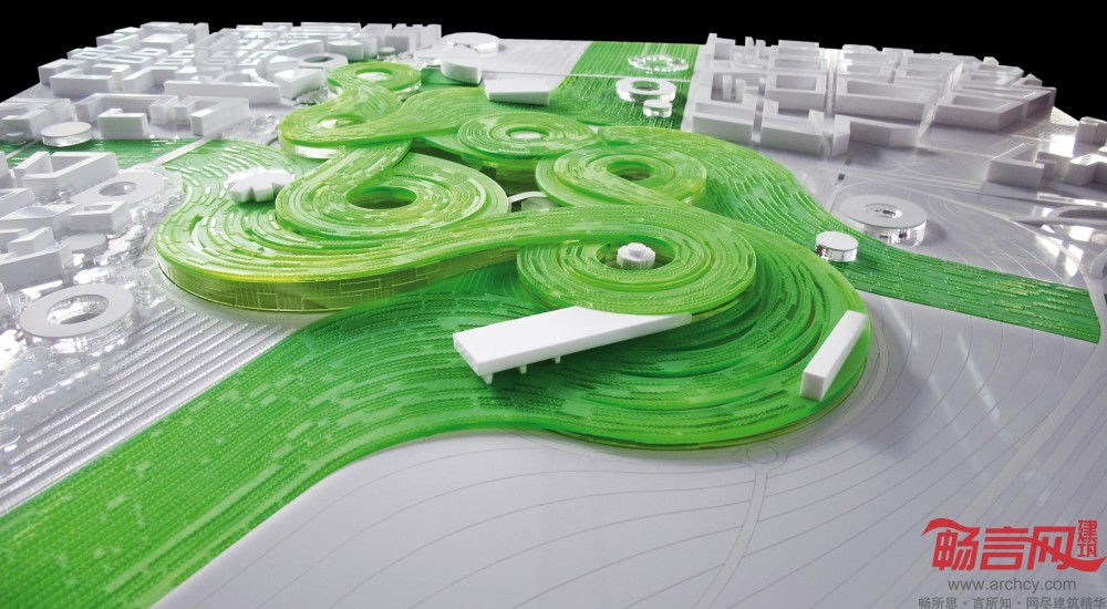 建筑师设计了很多环形回路,每一个回路分支都通往附近的景观,这样不仅拉近了室内外空间的距离,也增强了建筑和周围景观的融合。
