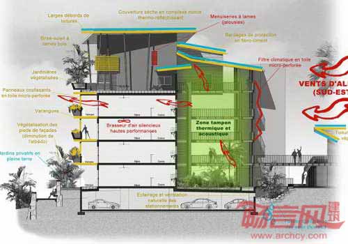 项目基于地点的生态基础,结合城市功能(居住、商店、服务、就业、休闲活动),提供多种可靠交通选择(频繁的常规大众交通服务和电动自行车),避免了过多的能源消耗(住宅未安装空调)。