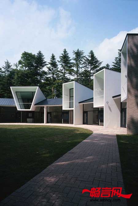 小住宅群的外观呈半圆形,这样它不但能“拥抱”后面的小森林,享受自然的景致,它也能让每户家庭感受到彼此的存在,尽管他们之间很少能直接见面。为了挡住外面街道的喧闹、使住宅内保持安静、保护每户的隐私,住宅面向街道一侧的幕墙是用钢筋混凝土结构、然后在其上面安装上小窗户做成的,而朝向森林的那一侧则安装了大块的玻璃窗,使住户能够尽赏森林之美。