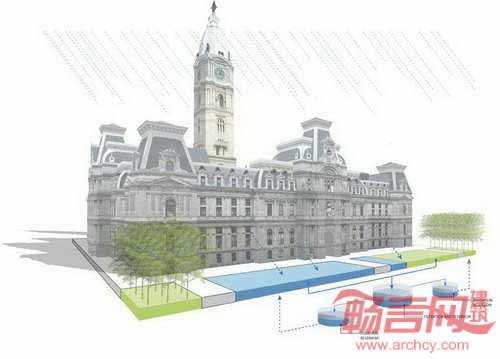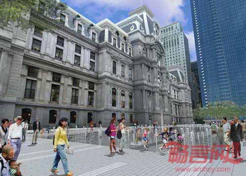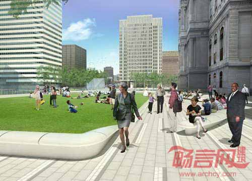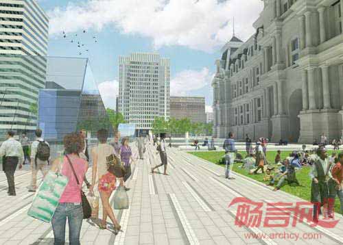 Dilworth下沉式广场位于美国费城市政厅前,与其显著的地理位置相比,其功能似乎不够突出。OLIN事务所计划对此进行改造,使广场地面与街道齐平,使之融入市政厅周边区域,同时添加新的市民和游客服务设施。