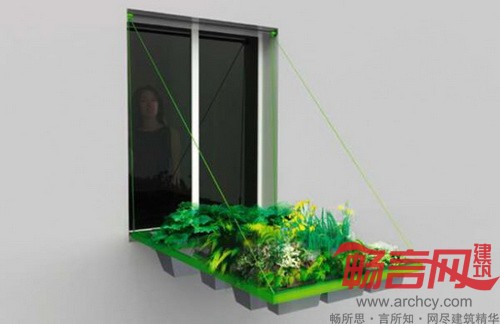 在美国纽约西南部布鲁克林(Brooklyn)区的日落公园(Sunset Park),有一个面积为10万平方英尺的屋顶花园,那里的植物都是液体栽培的。然而,对于没有屋顶区域使用权的普通城市居民来说,想要拥有这样的城市花园就变得比较困难。对此,巴黎的设计师团队Barreau&Charbonnet拿出了解决方案,他们设计出类似吊桥的巧妙装置,充分利用了窗户外面的空间。
