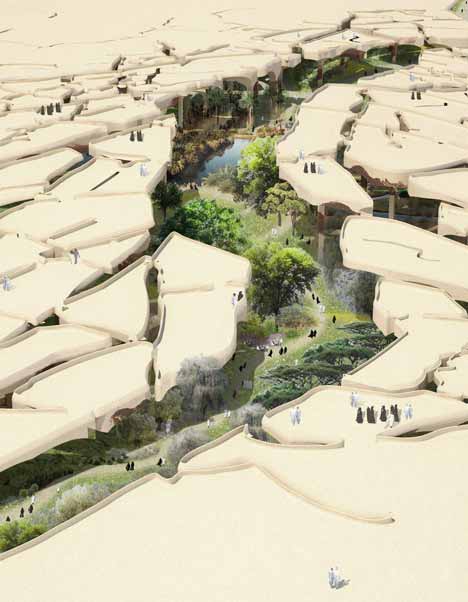 英国建筑师Thomas Heatherwick公布了阿布扎比洞穴公园设计方案。方案计划创建一个位于块面装天顶下方的公园,该设计灵感来自阿拉伯沙漠破碎的外形。项目占地12.5万平米,Al Fayah公园提供游乐、野餐、蔬菜花园和咖啡厅,引入了海湾地区原产的多种类型植物花卉。悬浮屋面通过一系列柱子支撑,下方添加了公共图书馆、清真寺、户外影院、室内外演出空间,可举办音乐、节日和社区活动。设计师表示,“Al Fayah公园设计运用了一系列特殊柱子结构,如同沙漠表面的裂片,微妙地形成了3D立体景观。这些架高块状结构创造了穿孔顶棚,具有部分遮阳功能,下方种植植物,保护其免受沙漠地区烈日暴晒。”