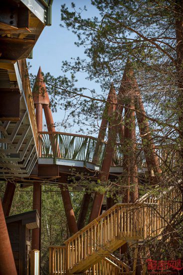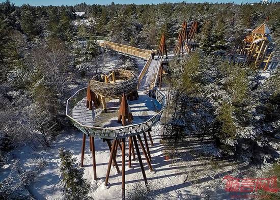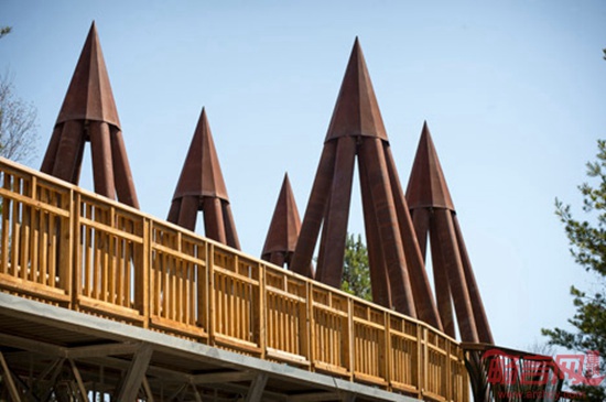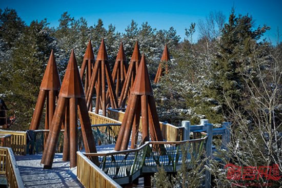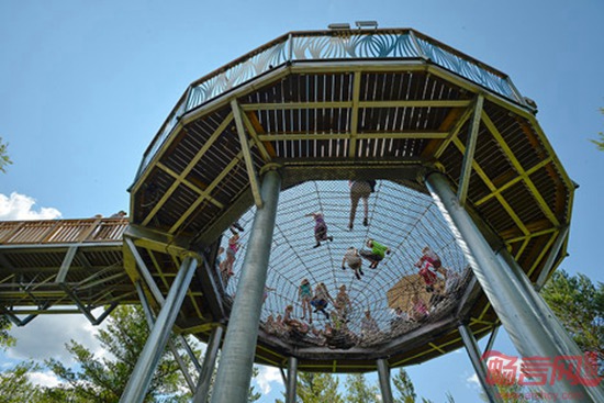Adirondack公园占地250万公顷,位于美国纽约上州。公园走道坐落在占地32公顷的自然保护区中,由一家非盈利机构经营。项目由建筑师Charles P Reay设计,他曾是HOK美国公司副总裁,设计过1964年世界博览会IBM馆。走道和桥梁由阻锈钢管支撑,游客可以在林稍间漫步、欣赏公园美景。